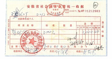 公司對老年協(xié)會的捐助3000元,蜀源村8000元