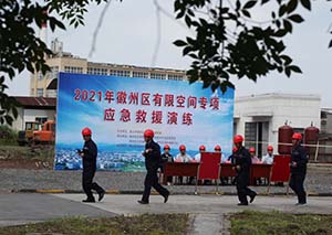 5月14日上午10點(diǎn),“2021年徽州區(qū)有限空間專項(xiàng)應(yīng)急救援演練”在我公司進(jìn)行,市應(yīng)急管理局副局長吳永杰、副區(qū)長范成林以及區(qū)應(yīng)急管理局、經(jīng)濟(jì)開發(fā)區(qū)、區(qū)衛(wèi)健委、區(qū)消防大隊(duì)等部門負(fù)責(zé)人到場指導(dǎo),園區(qū)23家化工企業(yè)50余人參加了觀摩。